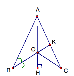 c/ Kẻ tia phân giác BK (K ∈ AC) của góc ABC. Gọi O là giao điểm của AH và BK. Chứng minh rằng CO là tia phân giác của góc ACB.