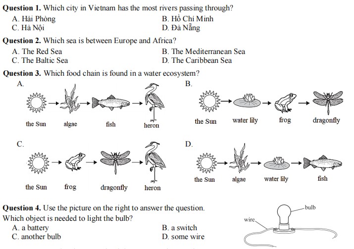 - Đề thi vào lớp 6 môn Tiếng Anh trường Nguyễn Tất Thành