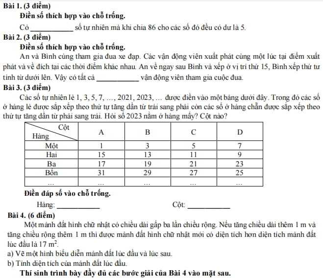 3. Đề thi vào lớp 6 Chuyên Trần Đại Nghĩa 2023