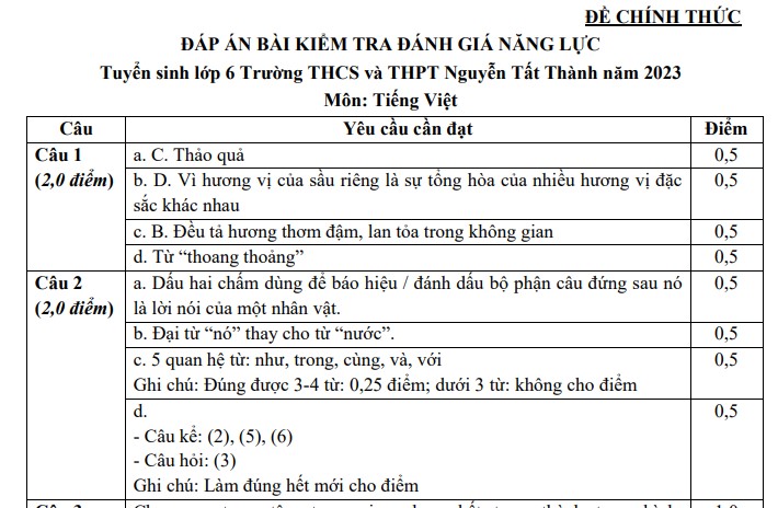 - 2. Đáp án đề thi Tiếng Việt vào lớp 6 trường Nguyễn Tất Thành năm 2024
