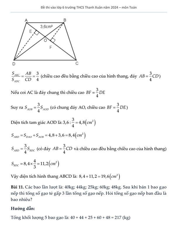- Đề thi vào lớp 6 trường THCS Thanh Xuân
