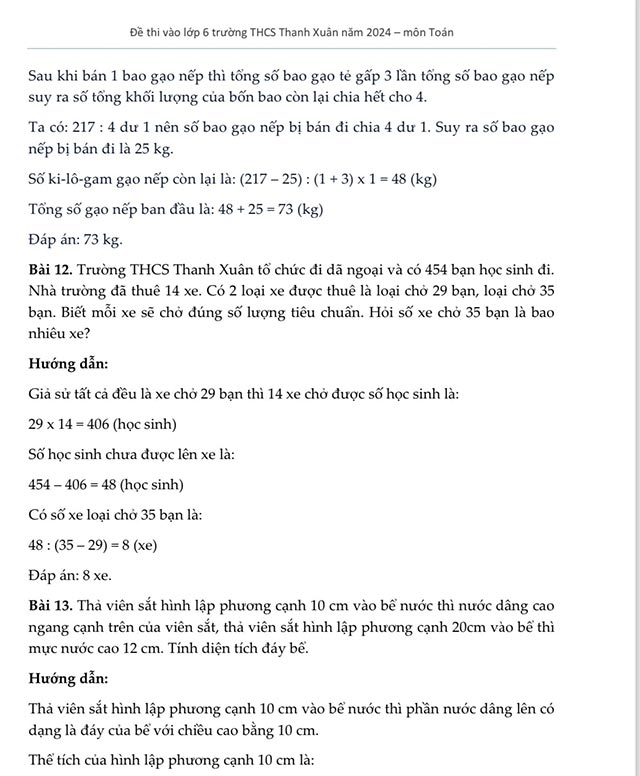 3. Đề thi vào lớp 6 môn Toán trường Thanh Xuân 2023 - 2024