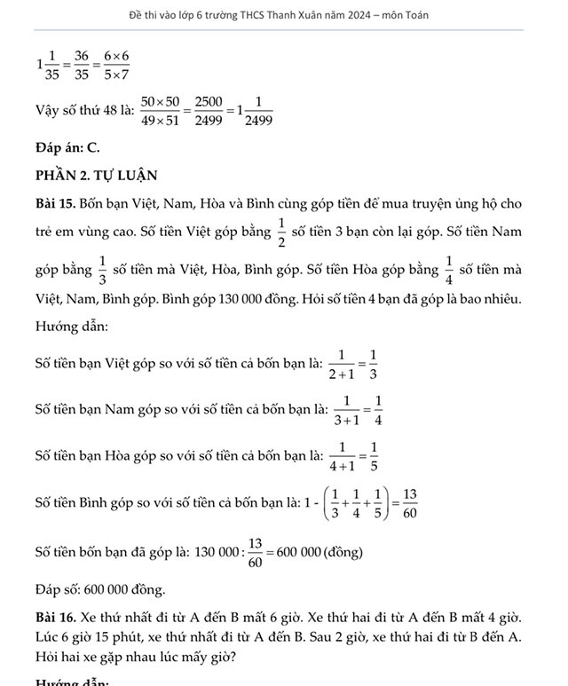 2. Đáp án đề thi Toán vào lớp 6 trường THCS Thanh Xuân 2024-2025