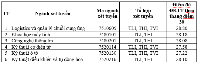 - 6. Điểm chuẩn Đại học Giao thông Vận tải Hà Nội phương thức xét tuyển kết hợp