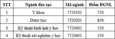 Điểm quy đổi từ 15 điểm trở lên; ngành Điều dưỡng từ 18 điểm trở lên và ngành Dược học từ 20 điểm trở lên |