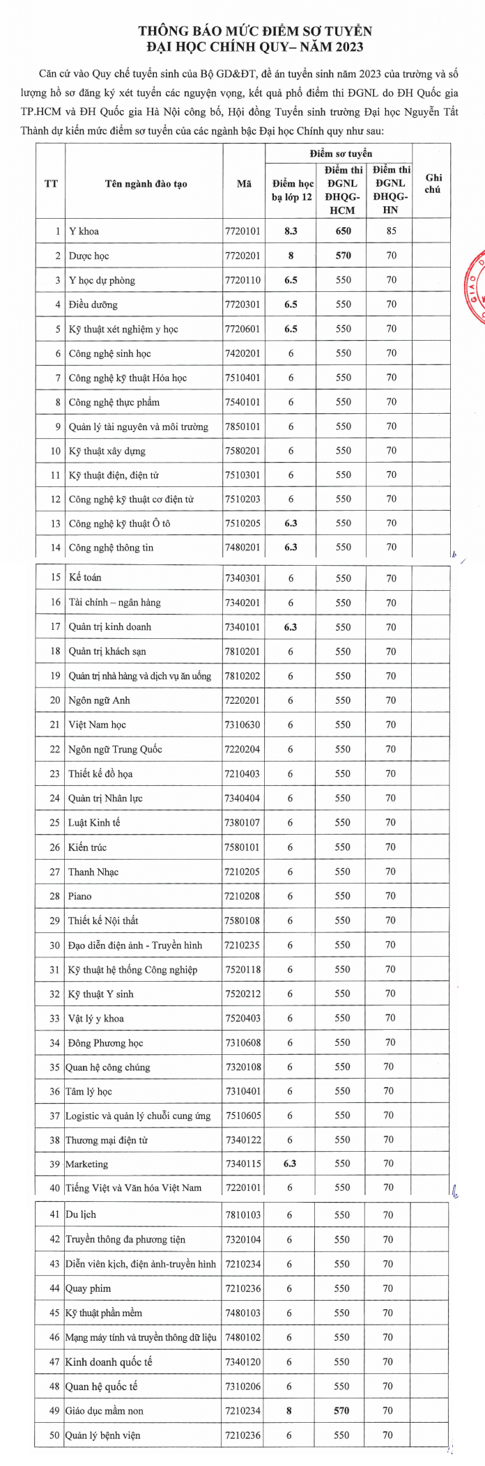 - Điểm chuẩn đánh giá năng lực Đại học Nguyễn Tất Thành