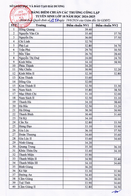 Chiều 24.6, Sở Giáo dục và Đào tạo (GDĐT) tỉnh Hải Dương công bố điểm chuẩn vào lớp 10 THPT năm học 2023 - 2024.