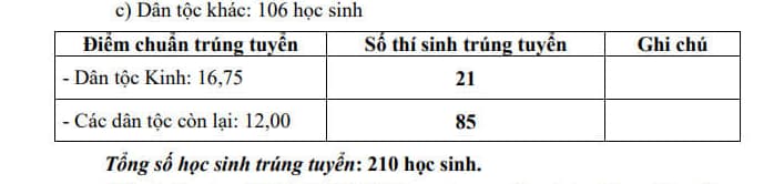 Ngày 20/06/2023, Sở Giáo dục và Đào tạo tỉnh Đắk Lắk ban hành Quyết định 398/QĐ-SGDĐT về việc chuẩn y điểm chuẩn và số lượng học sinh trúng tuyển vào lớp 10 trường THPT Dân tộc nội trú, kết quả trúng tuyển như sau: