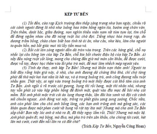 Đề đọc hiểu Kép Tư Bền trắc nghiệm (có đáp án)