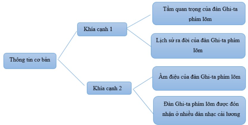 Việc đính kèm sơ đồ nhánh vào trong bài giúp độc giả hình dung một cách cụ thể những loại nhạc cụ phổ biến có trong dàn nhạc cải lương và hình ảnh của từng loại nhạc cụ. Đồng thời, giúp cụ thể hóa phần lời thuyết minh trong văn bản.