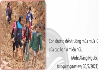 - GV nhận xét, tuyên dương và dẫn dắt vào bài mới: Con đường đến trường mùa mưa lũ của các bạn ở miền núi rất khó khăn, bất tiện nhưng các bạn vẫn nỗ lực đến trường để học tập. |