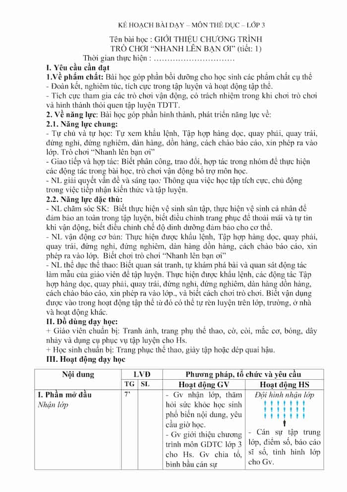1. Giáo án GDTC lớp 3 Chân trời sáng tạo mẫu 1
