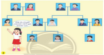 - GV NX, tuyên dương. *Kết luận: Ông bà sinh ra bố và các anh, chị, em của bố cùng với các con của họ là những người thuộc họ nội. Ông bà sinh ra mẹ, các anh, chị, em của mẹ cùng với các con của họ là những người thuộc họ ngoại. Hoạt động 2: Xưng hô với các thành viên trong gia đình. * Mục tiêu: HS biết cách xưng hô đúng với các thành viên trong gia đình thuộc họ nội, họ ngoại. * Cách tiến hành: - Giáo viên giao nhiệm vụ cho học sinh làm việc theo nhóm: Quan sát hình 2 trang 9 trong SGK và làm việc nhóm bốn, trả lời các câu hỏi: