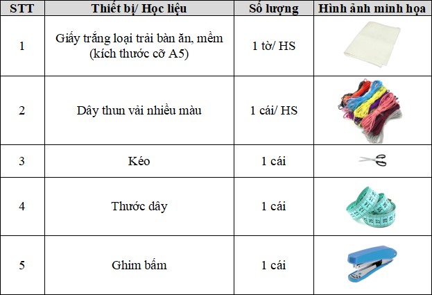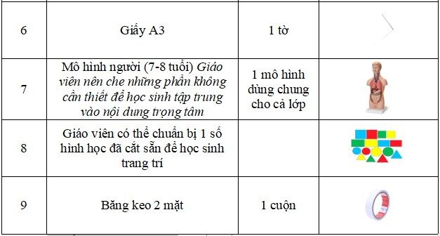 - Giáo viên chuẩn bị 1 số đồ dùng dạy học như bảng sau: