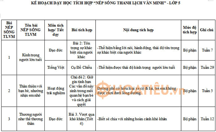 - 6. Kế hoạch tích hợp giáo dục lý tưởng các mạng, đạo đức lối sống lớp 5