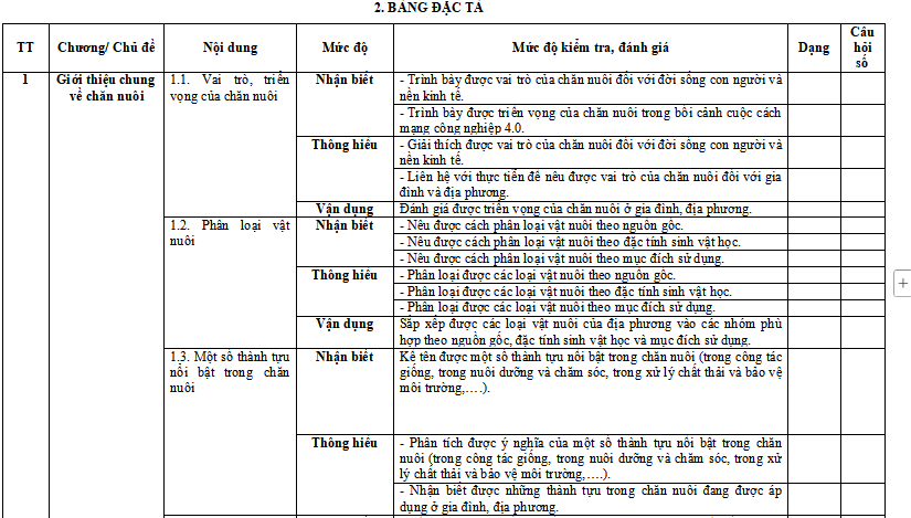 Xem đầy đủ bản ma trận và bản đặc tả chi tiết trong file tải về