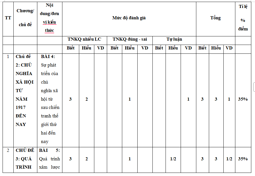 Xem đầy đủ nội dung ma trận đề kiểm tra Lịch sử 11 cuối kì 1 trong file tải về