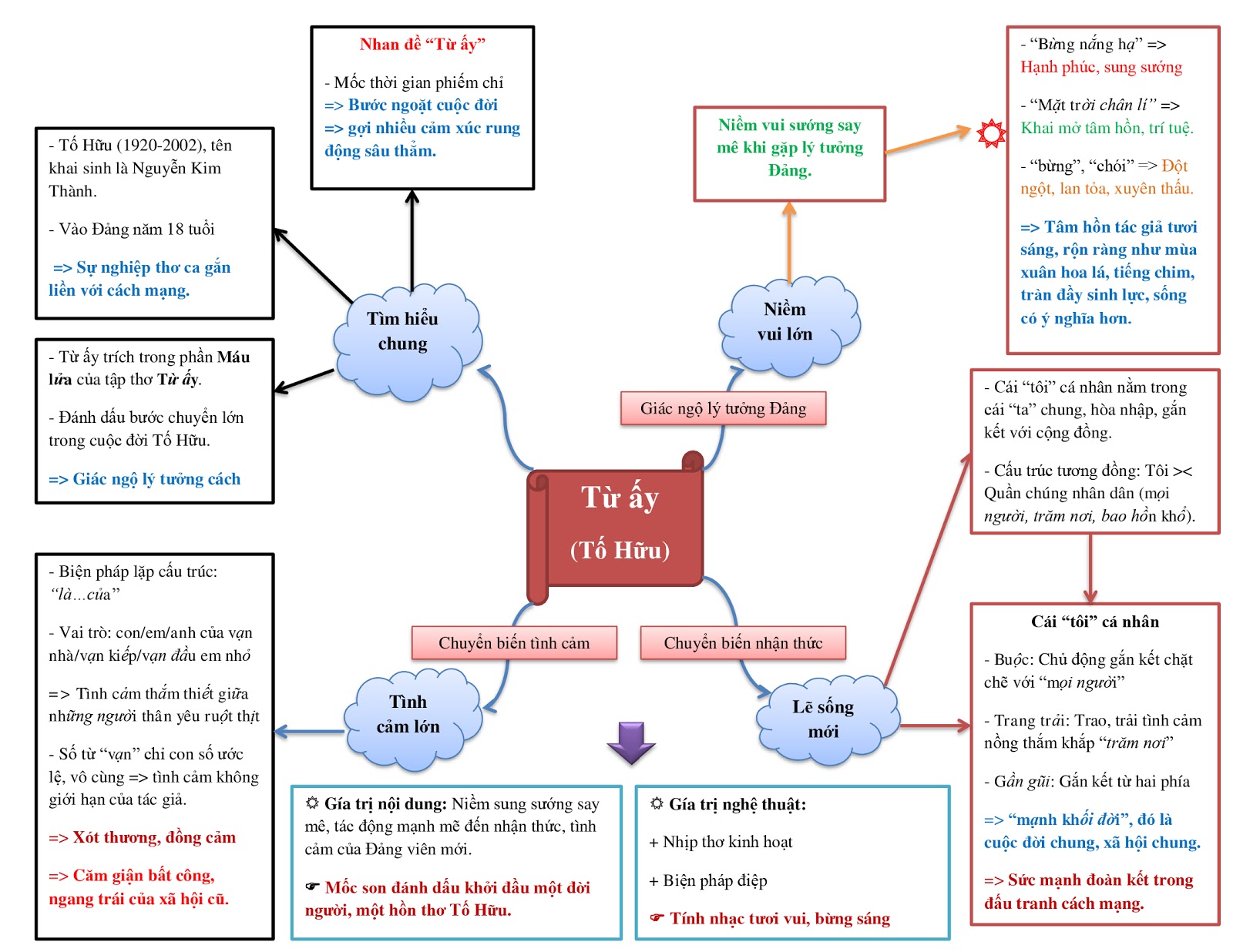 - Hoàn cảnh ra đời của bài thơ Từ ấy: Từ ấy là bài thơ có ý nghĩa mở đầu cho con đường cách mạng, con đường thi ca của Tố Hữu, là cái mốc đánh dấu thời điểm (1937) và được kết nạp Đảng năm 1938 - Tố Hữu giác ngộ và gặp ánh sáng lí tưởng cộng sản. Đó cũng chính là tuyên ngôn nghệ thuật của Tố Hữu.