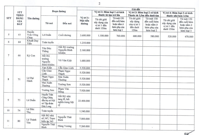 - Bảng giá đất tỉnh Thái Bình Mới nhất