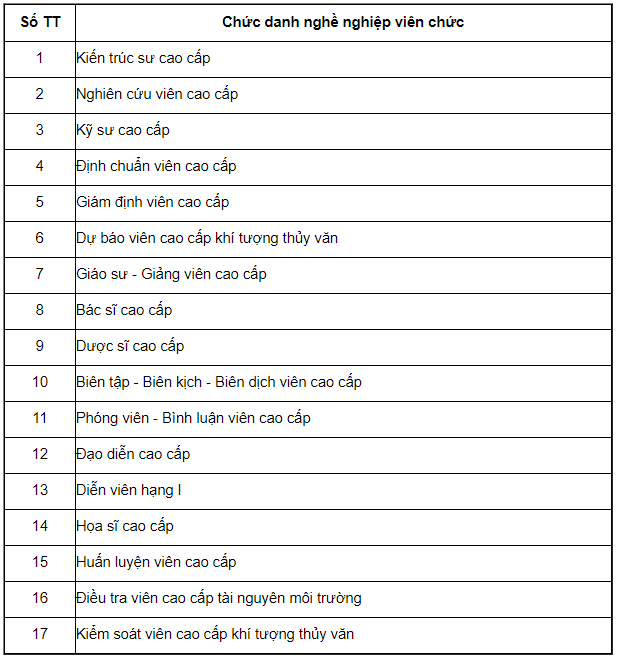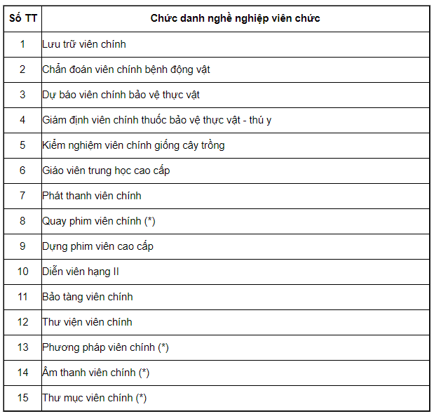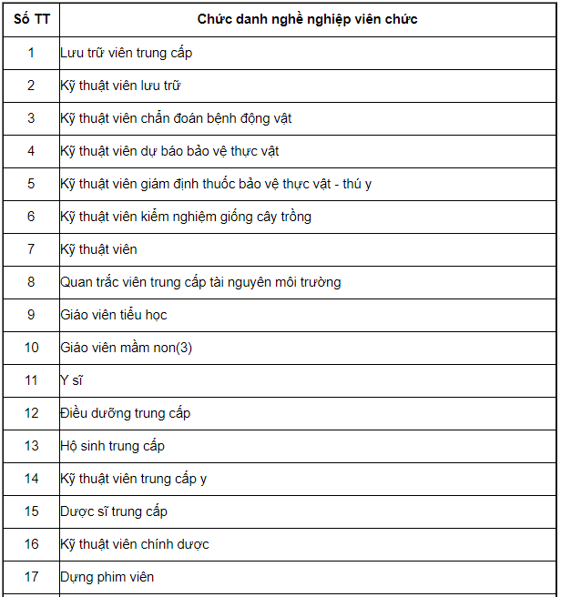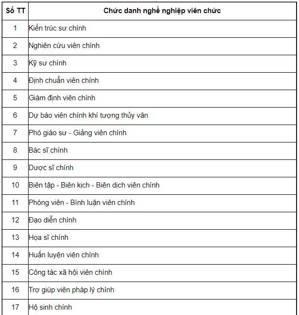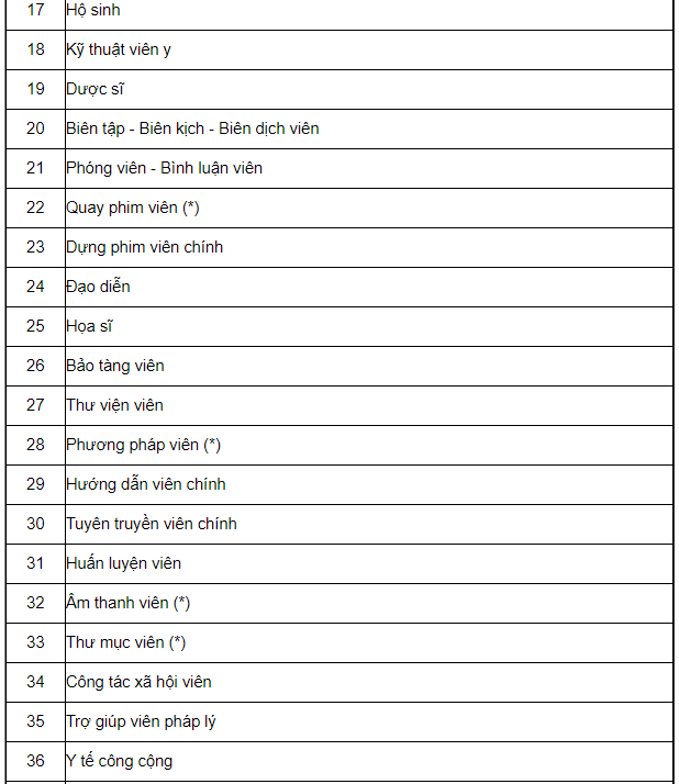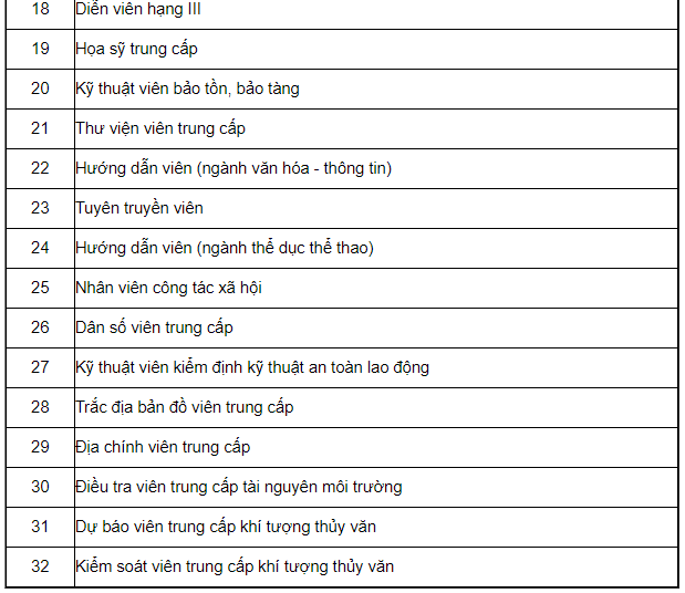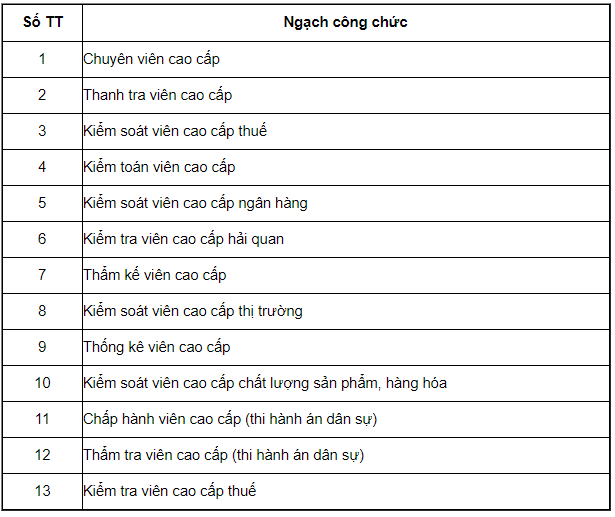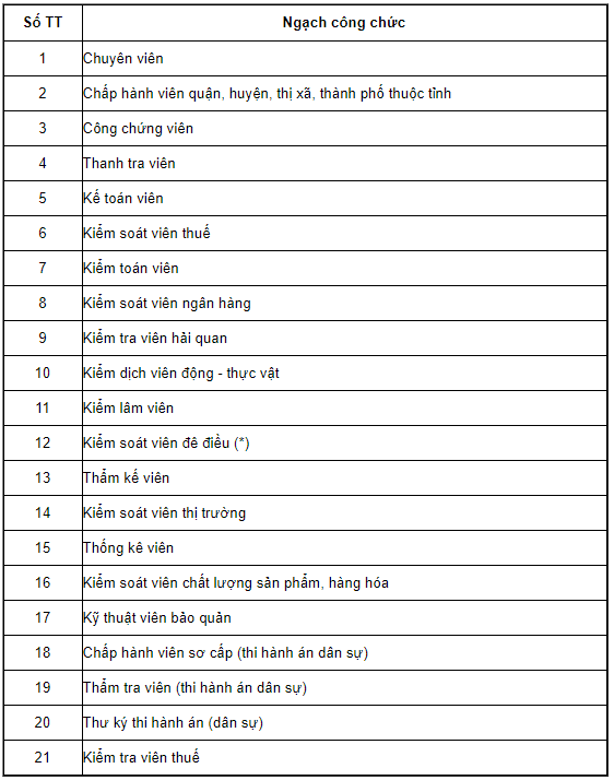 Danh mục mã ngạch lương công chức viên chức mới nhất 2025