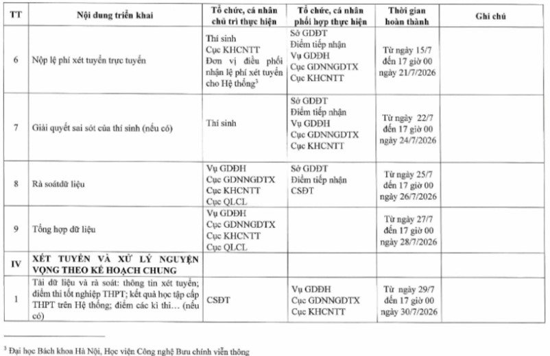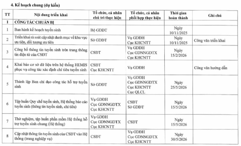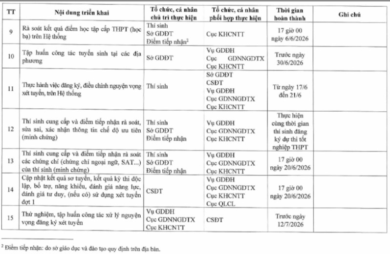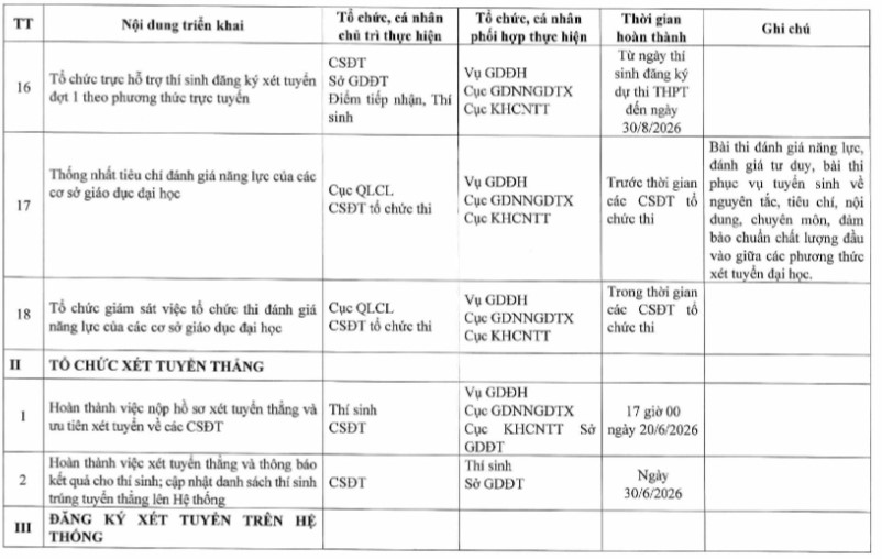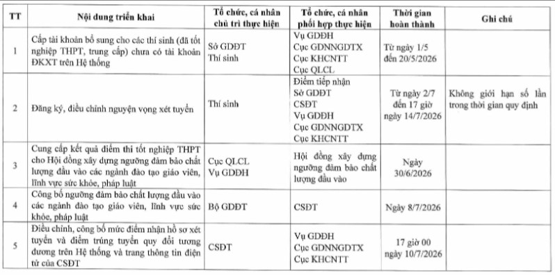 Theo đó, lộ trình và mốc thời gian chi tiết trong tuyển sinh đại học 2026 như sau: