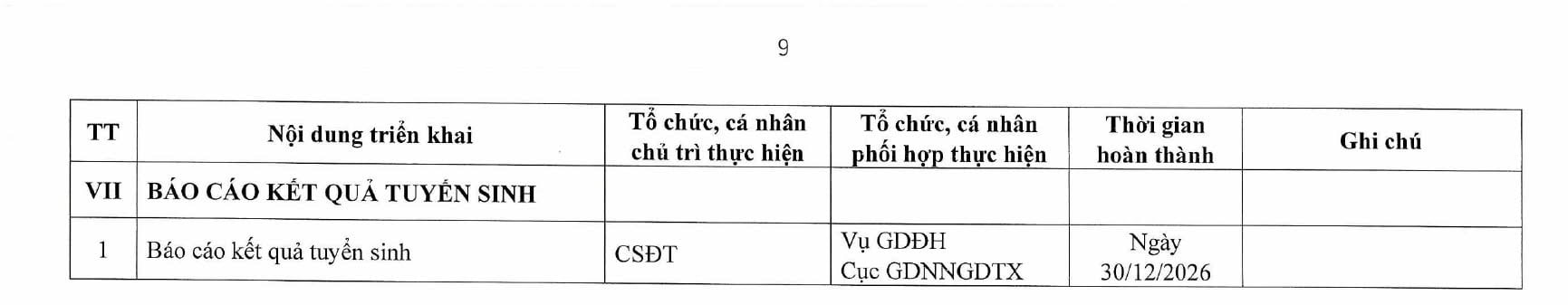 Ngày 03/11/2025, Bộ Giáo dục và Đào tạo đã ban hành Quyết định 3037/QĐ-BGDĐT năm 2025 ban hành Kế hoạch triển khai công tác tuyển sinh đại học cao đẳng năm 2026.