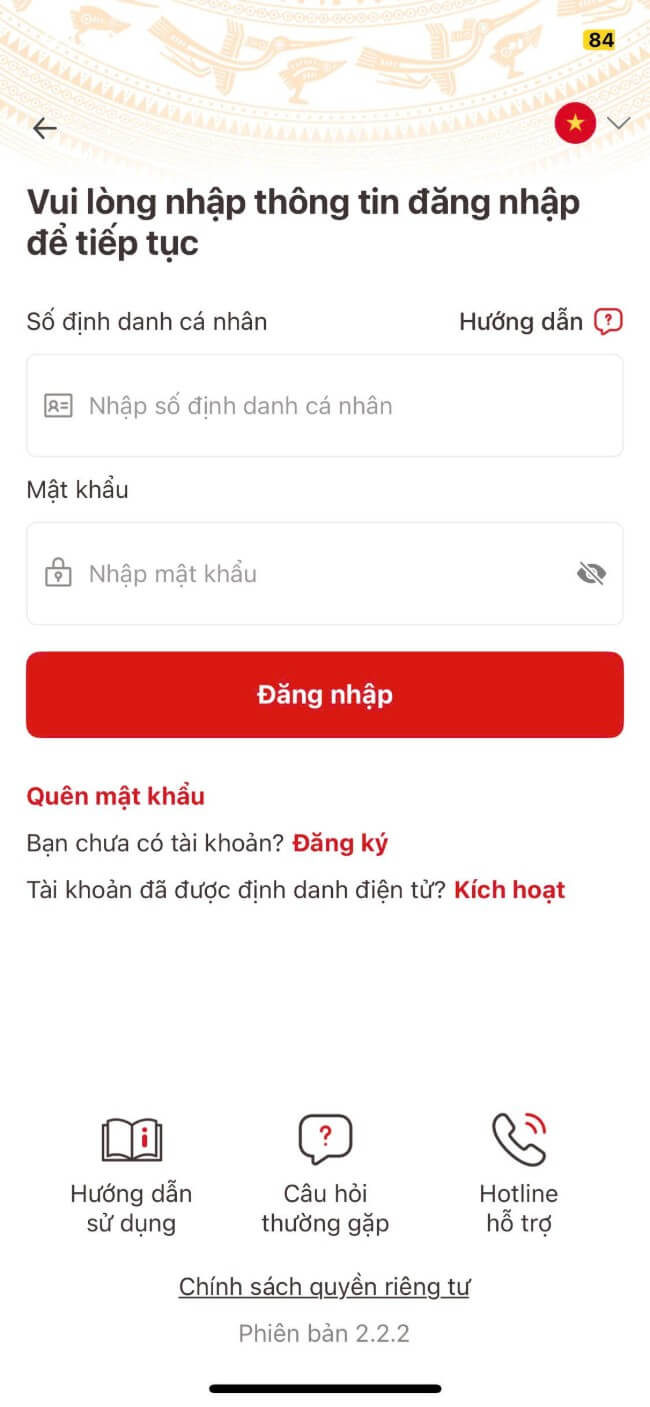 Bước 1: Đăng nhập vào VNeID.