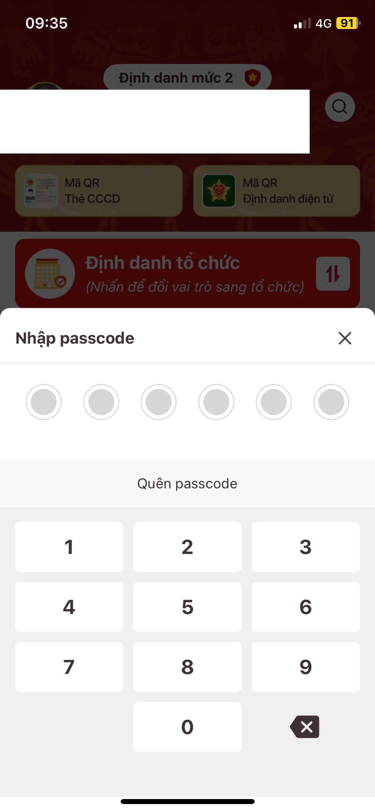 Bước 3: Nhập Passcode tài khoản đã cài đặt.
