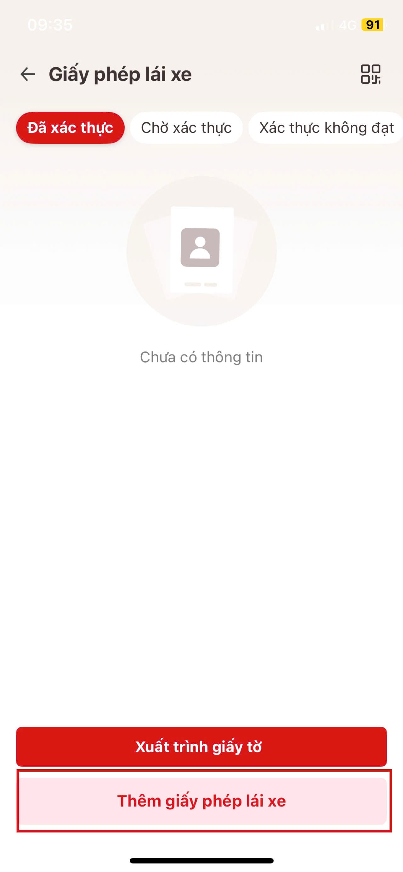 Bước 4: Chọn "Thêm giấy phép lái xe"