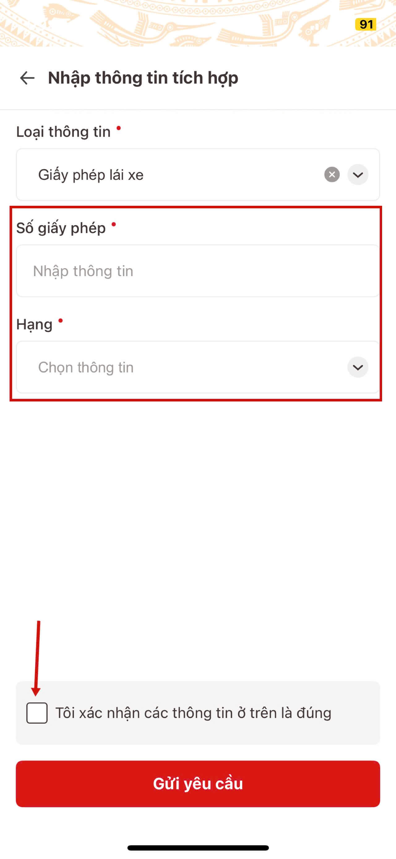 Và tick chọn vào ô bên trái phía dưới "Tôi xác nhận các thông tin ở trên là đúng".