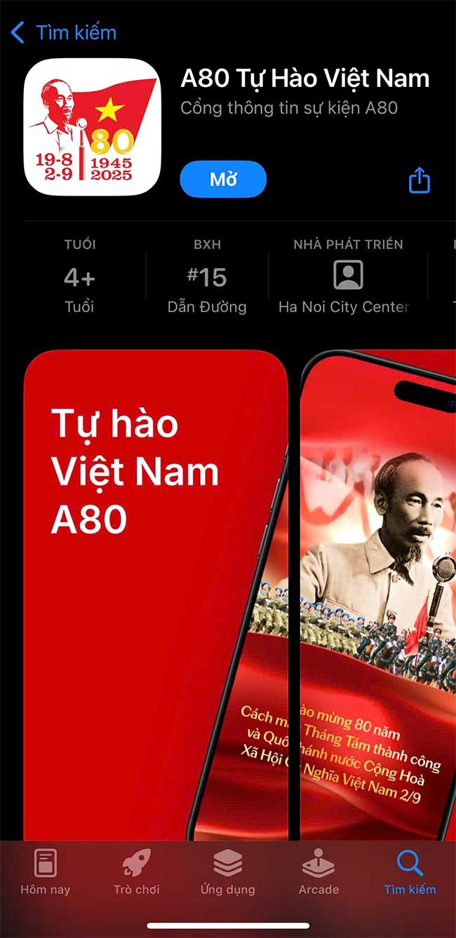 Bước 1: Nhập từ khóa: "A80 Tự Hào Việt Nam" để tải App A80 Tự Hào Việt Nam