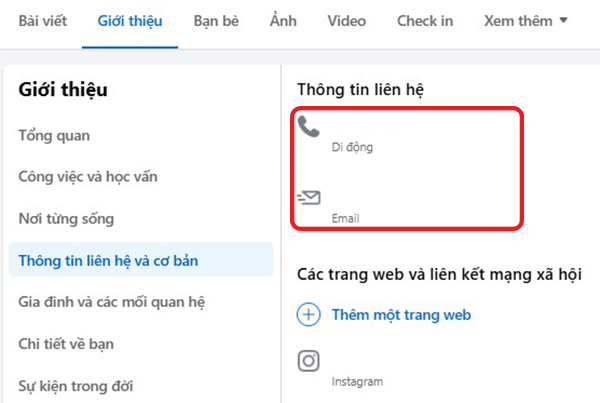 Bước 5: Chọn "Thông tin liên hệ và cơ bản"