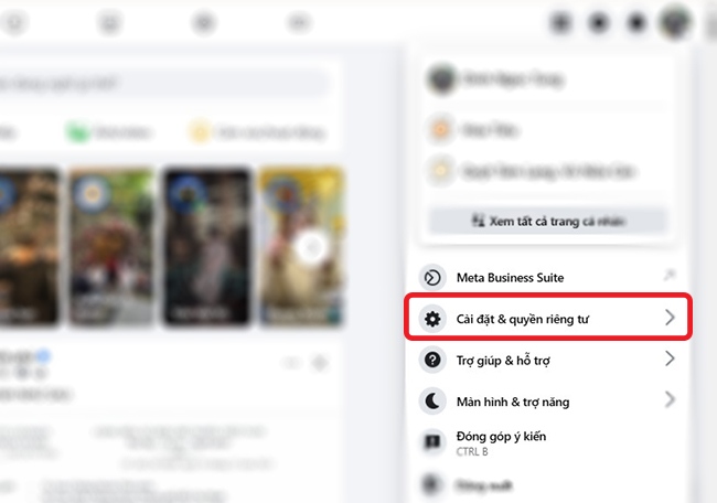 Bước 2: Ở góc phía trên bên phải màn hình, nhấn vào biểu tượng ảnh đại diện. Sau đó chọn "Cài đặt & quyền riêng tư"