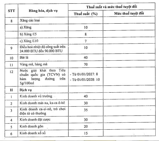 Biểu thuế tiêu thụ đặc biệt áp dụng từ ngày 01/01/2026