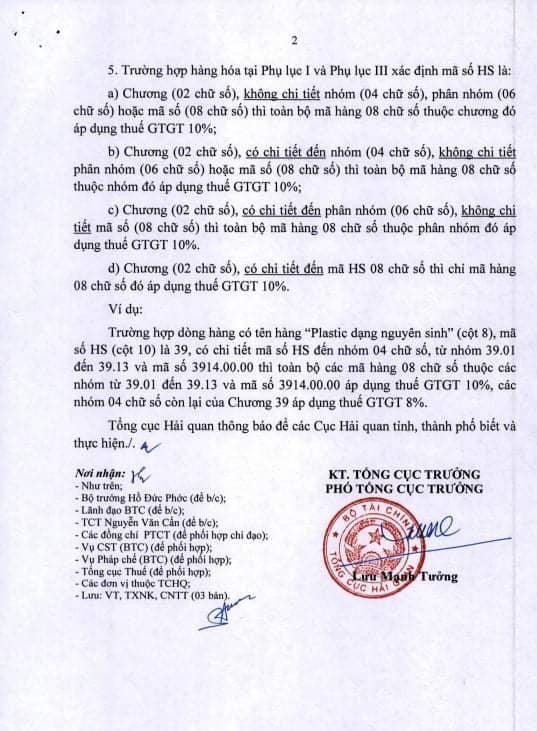 - Chương (02 chữ số) có chi tiết đến nhóm (04 chữ số), không chi tiết phân nhóm (06 chữ số) hoặc mã số (08 chữ số) thì toàn bộ mã hàng 08 chữ số thuộc nhóm đó áp dụng thuế GTGT 10%.