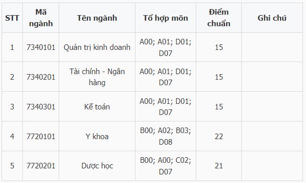 | Y khoa | 7720101 | A02, B00, B03, D08 |