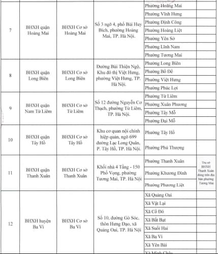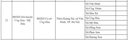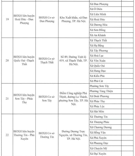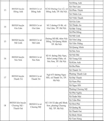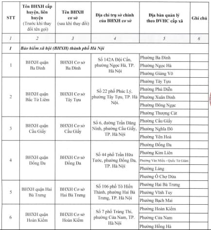 Danh sách 23 BHXH cơ sở tại TP Hà Nội từ 9/7/2025