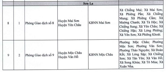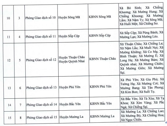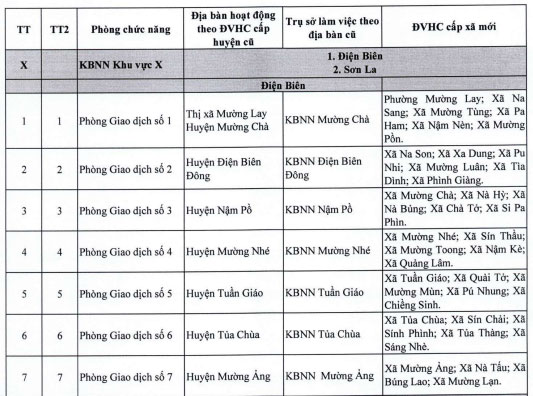 Danh sách 15 Phòng Giao dịch thuộc Kho bạc Nhà nước khu vực 10 (Điện Biên, Sơn La) từ 01/7/2025