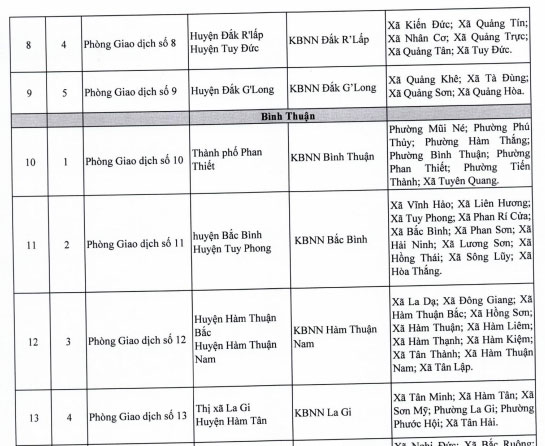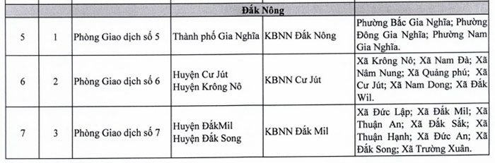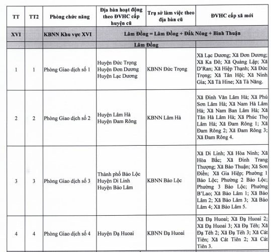 Danh sách 15 Phòng giao dịch thuộc Kho bạc Nhà nước khu vực 16 (Lâm Đồng) từ ngày 01/7/2025