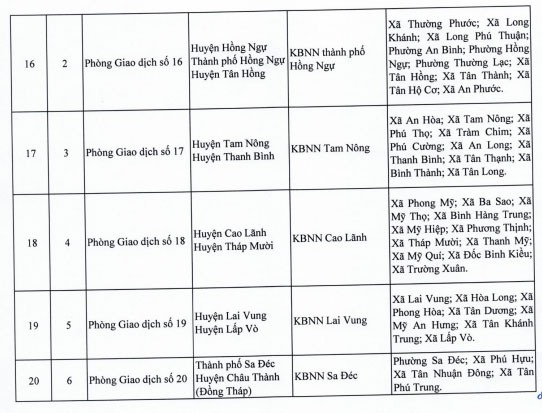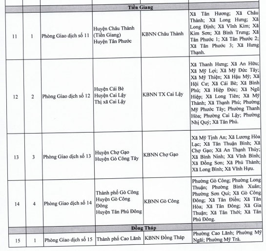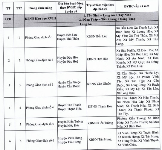 Danh sách 20 Phòng Giao dịch thuộc Kho bạc Nhà nước khu vực 18 (Tây Ninh, Đồng Tháp) từ 01/07/2025