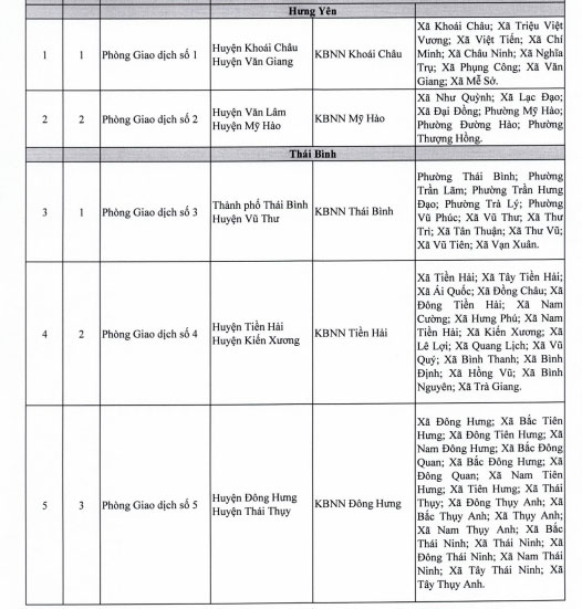 1. Danh sách chi tiết 6 Phòng giao dịch thuộc Kho bạc Nhà nước khu vực 4 (Hưng Yên) từ 01/7/2025