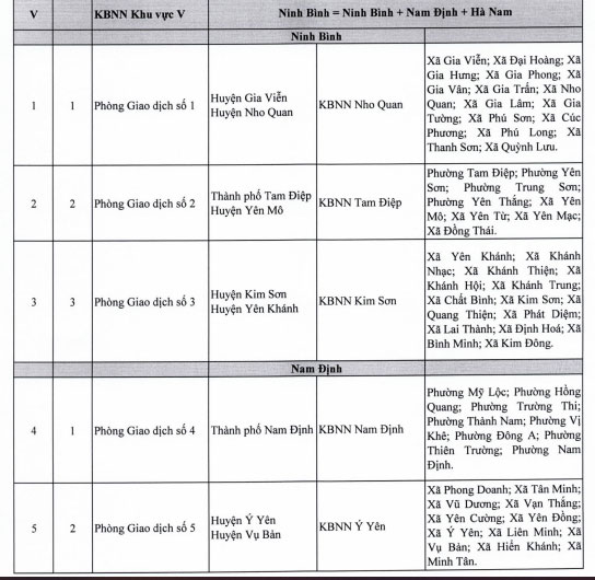 1. Danh sách chi tiết 10 Phòng giao dịch thuộc Kho bạc Nhà nước khu vực 5 từ 01/7/2025 (Ninh Bình, Nam Định, Hà Nam)