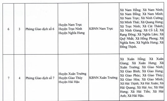 Danh sách 10 Phòng giao dịch thuộc Kho bạc Nhà nước khu vực 5 (Ninh Bình, Nam Định, Hà Nam) từ 01/7/2025