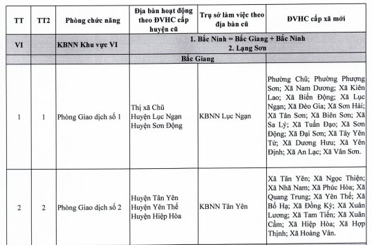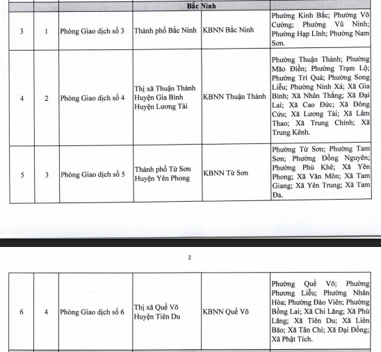 Danh sách 10 Phòng Giao dịch thuộc Kho bạc Nhà nước khu vực 6 (Bắc Ninh, Lạng Sơn) từ 01/07/2025