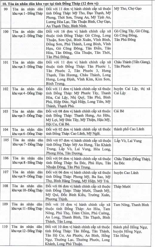 1. Danh sách chi tiết 12 Tòa án nhân dân khu vực tại tỉnh Đồng Tháp từ 1/7/2025