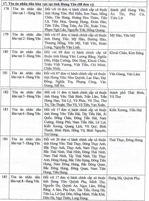 1. Danh sách chi tiết 8 Tòa án nhân dân khu vực tại tỉnh Hưng Yên từ 1/7/2025