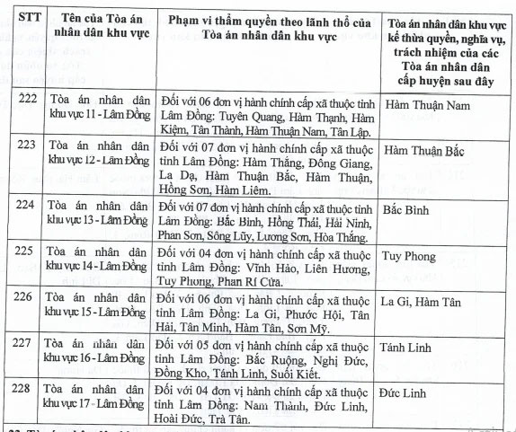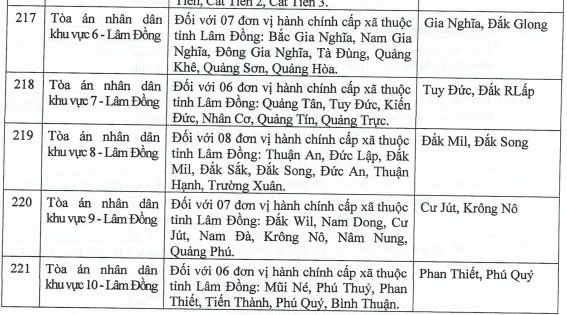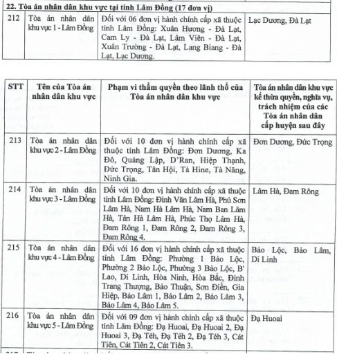 1. Danh sách chi tiết 17 Tòa án nhân dân khu vực tại tỉnh Lâm Đồng từ 1/7/2025