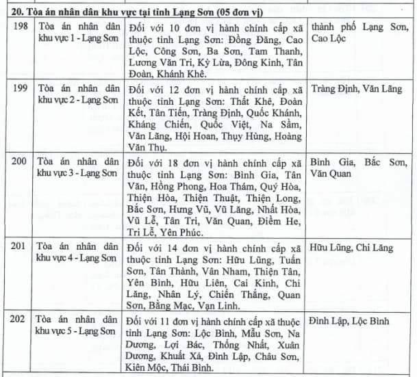 1. Danh sách chi tiết 5 Tòa án nhân dân khu vực tại tỉnh Lạng Sơn từ 1/7/2025