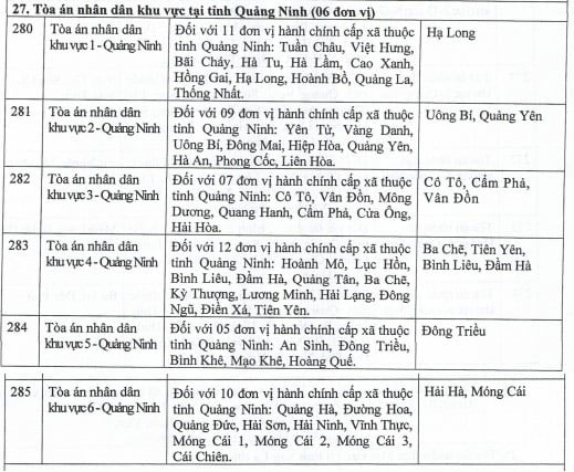 1. Danh sách chi tiết 6 Tòa án nhân dân khu vực tại tỉnh Quảng Ninh từ 1/7/2025