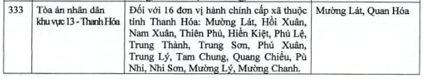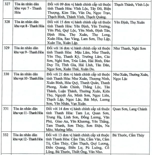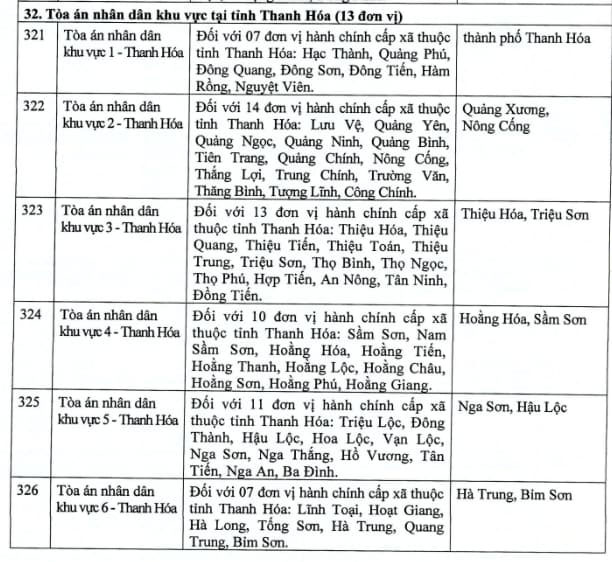 Theo đó, danh sách 13 Tòa án nhân dân khu vực tại tỉnh Thanh Hóa như sau: